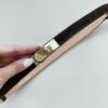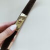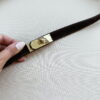 -Ceinture fine marron en cuir daim totalement réglable par coulissement jusqu’à 117cm.