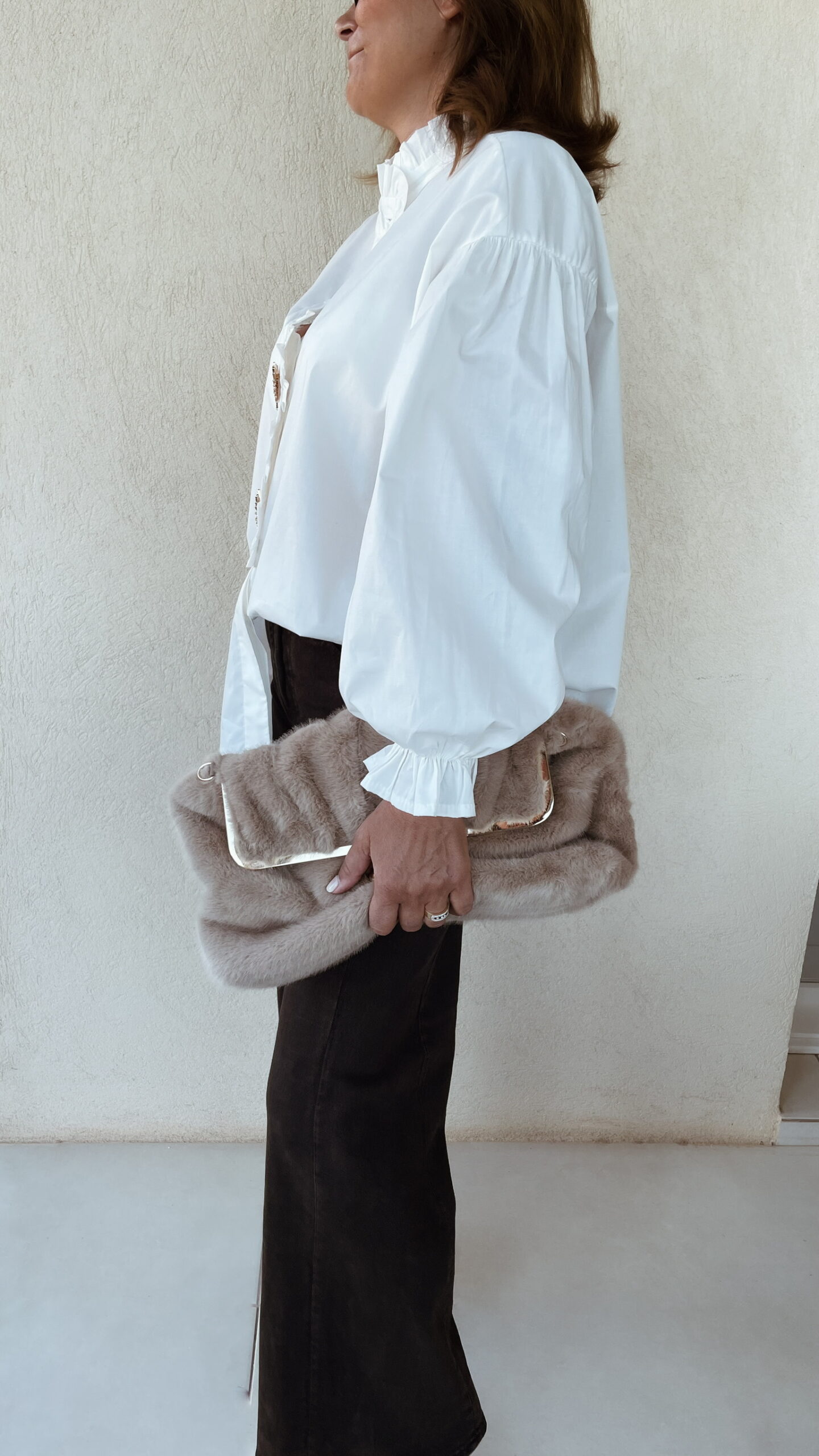 Chemise écru manches longues avec élastique au niveau des poignets.