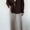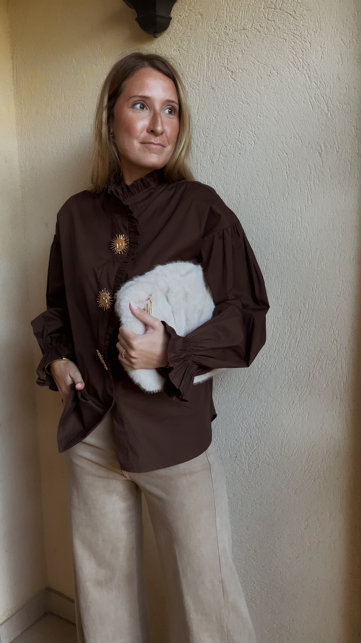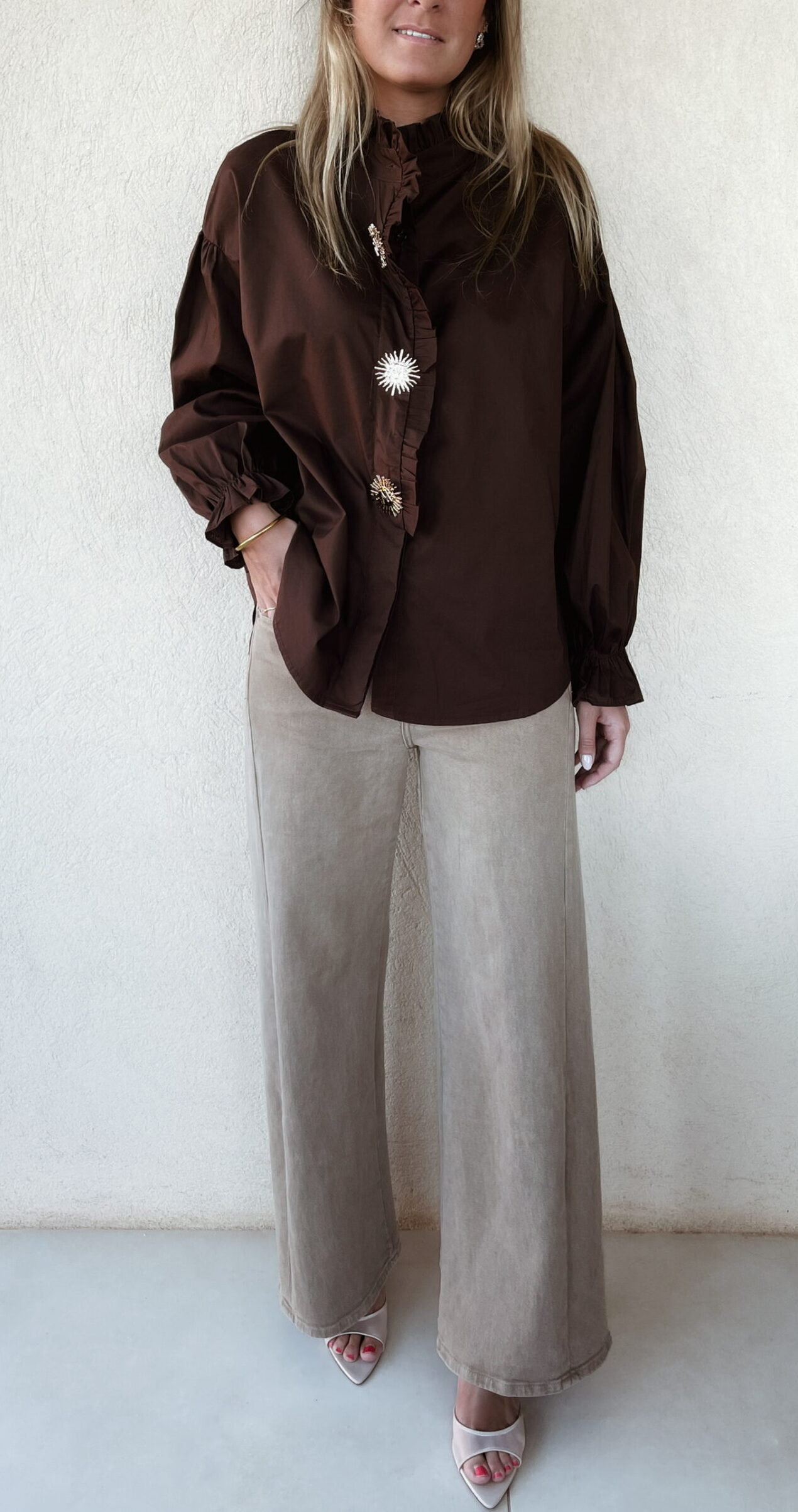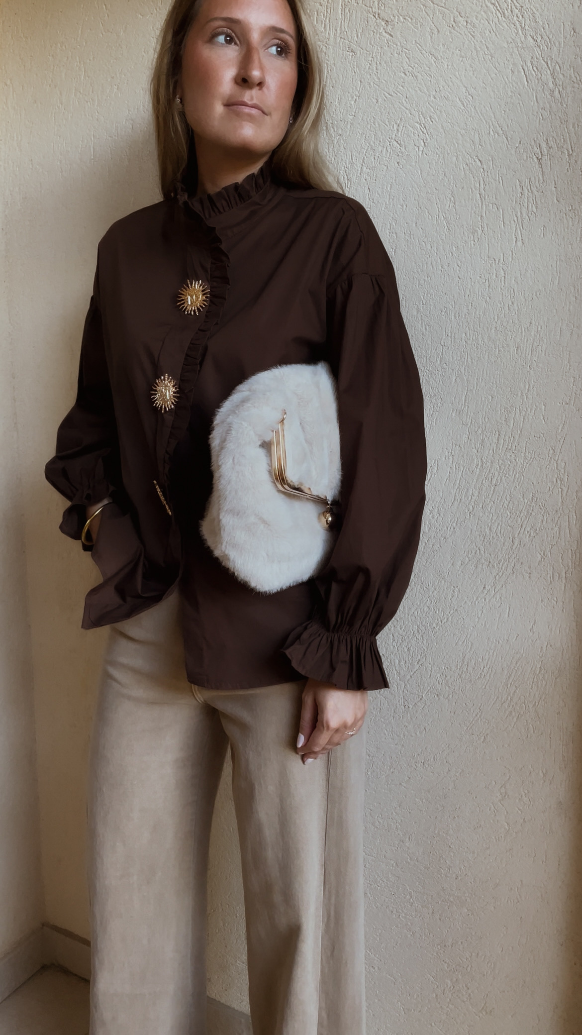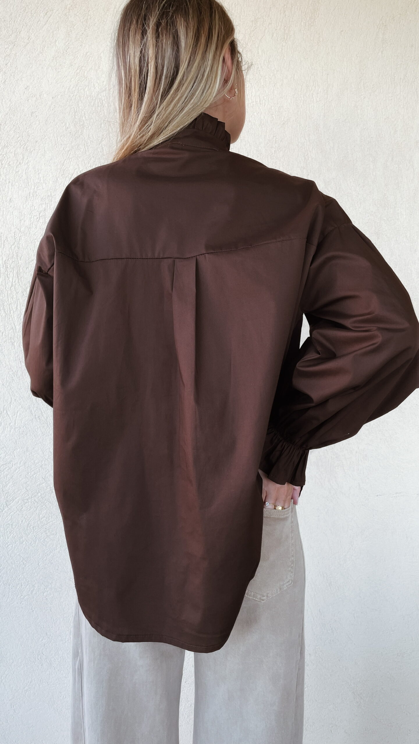 Chemise marron manches longues avec élastique au niveau des poignets.