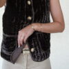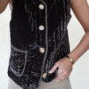 Gilet velours couleur chocolat sans manche fermé avec des boutons.