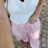 Taille élastique avec lien de serrage, deux poches sur les côtés.